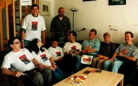 links naar rechts: (staand:) Ger Derksen en Frank Engelen, (zittend:)